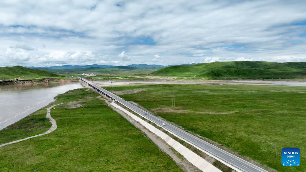 This aerial photo taken on July 6, 2023 shows the scenery along the Yellow River in Maqu County, Gannan Tibetan Autonomous Prefecture of northwest China's Gansu Province.