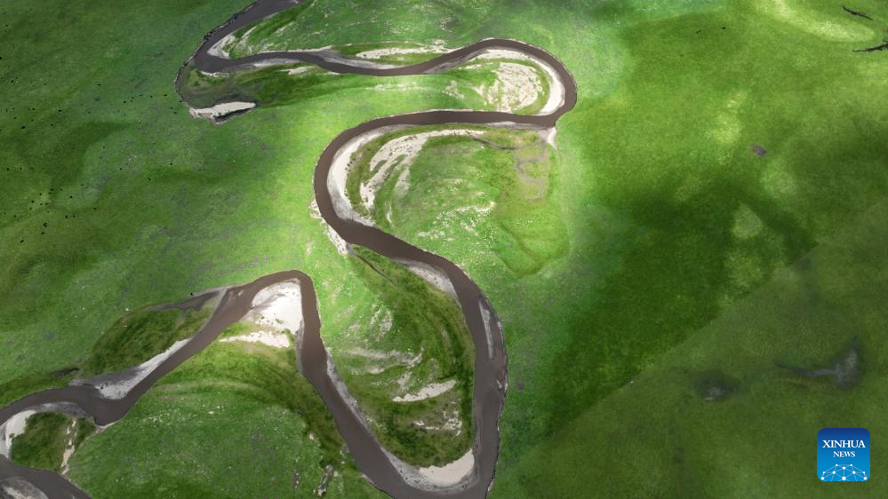 This aerial photo taken on July 6, 2023 shows the scenery of the Awancang Wetland in Maqu County, Gannan Tibetan Autonomous Prefecture of northwest China's Gansu Province.
