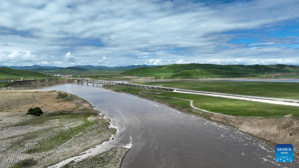 This aerial photo taken on July 6, 2023 shows a grassland after restoration along the Yellow River in Maqu County, Gannan Tibetan Autonomous Prefecture of northwest China's Gansu Province.