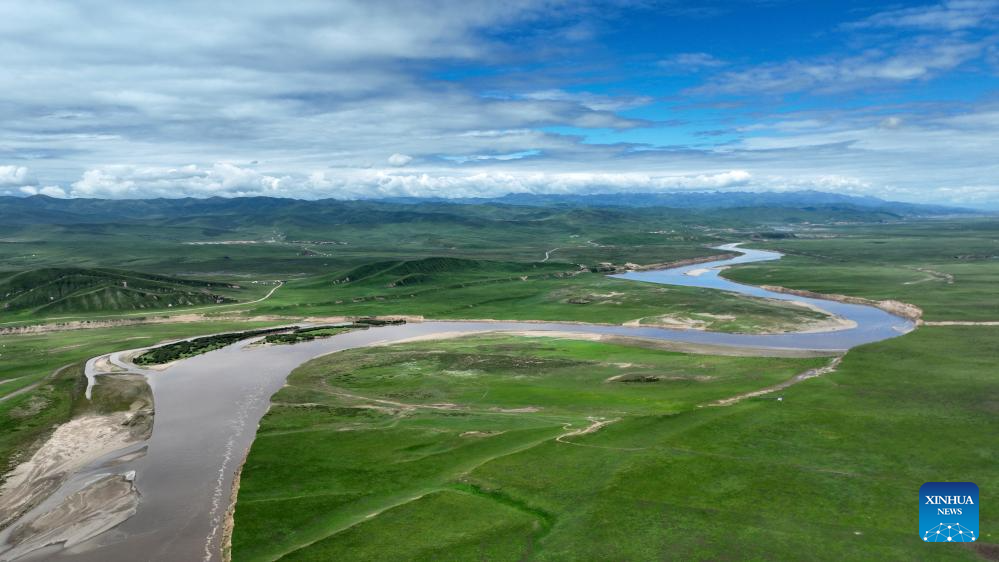 This aerial photo taken on July 6, 2023 shows the scenery along the Yellow River in Maqu County, Gannan Tibetan Autonomous Prefecture of northwest China's Gansu Province.