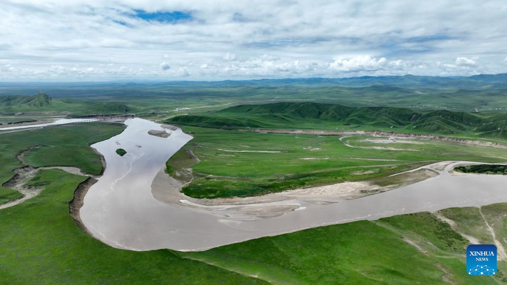 This aerial photo taken on July 6, 2023 shows the scenery along the Yellow River in Maqu County, Gannan Tibetan Autonomous Prefecture of northwest China's Gansu Province.