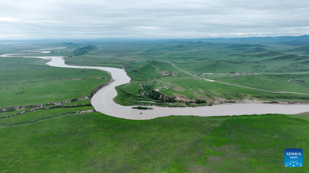 This aerial photo taken on July 6, 2023 shows the scenery along the Yellow River in Maqu County, Gannan Tibetan Autonomous Prefecture of northwest China's Gansu Province.