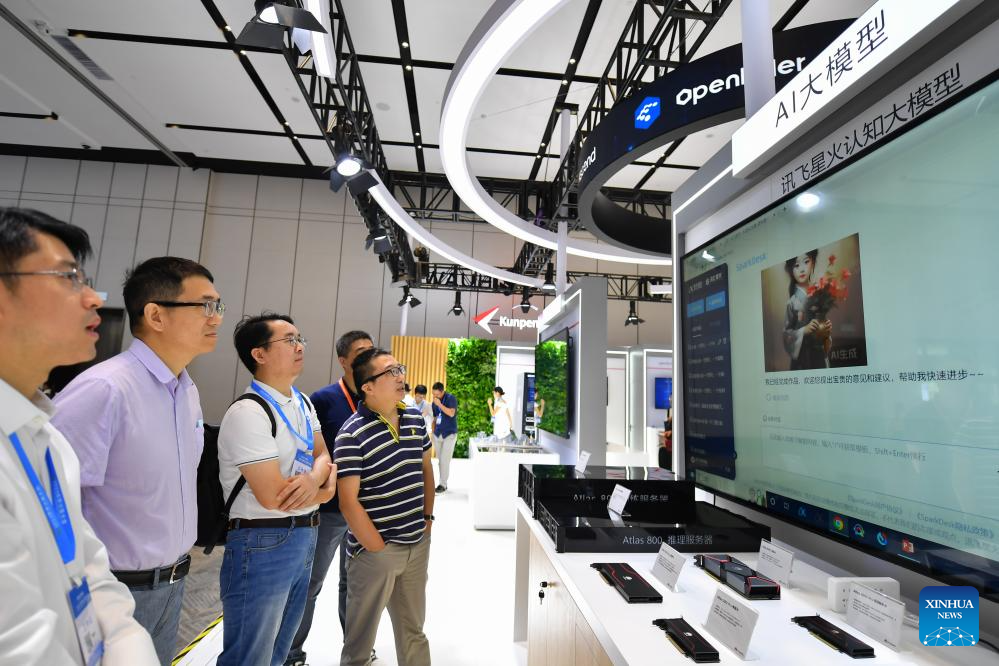 Visitors learn about the AI-powered large language model during the 2023 World Computing Conference in Changsha, central China's Hunan Province, Sept. 15, 2023.