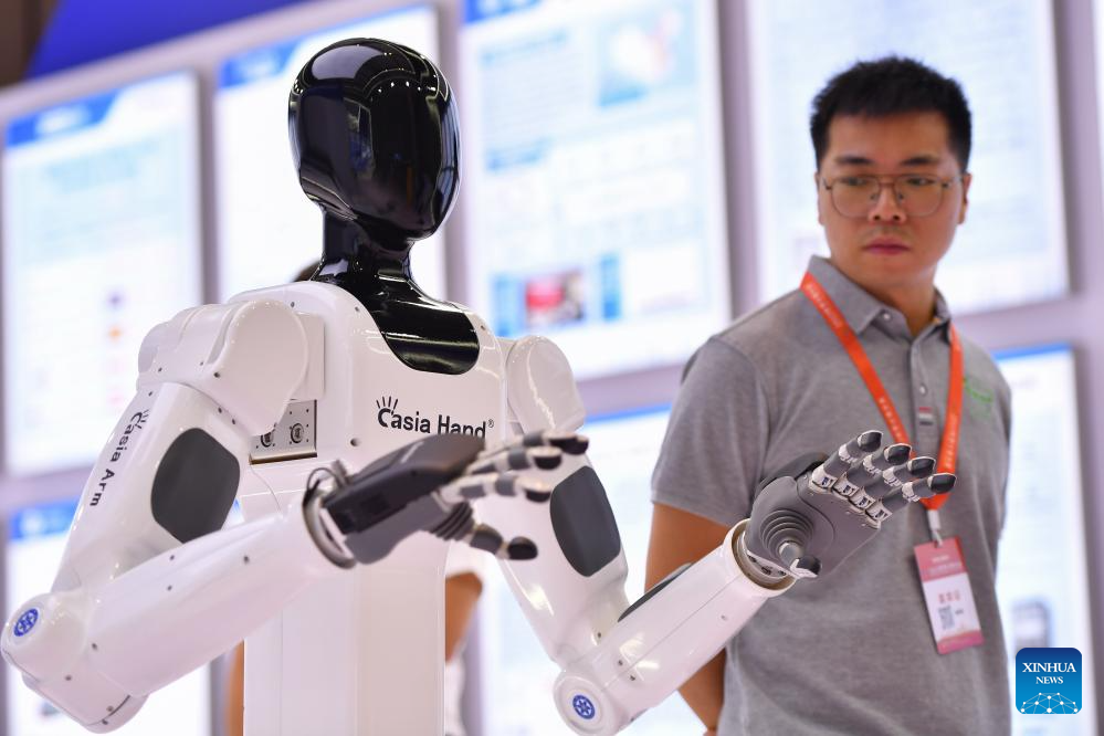 A visitor learns about a service robot during the 2023 World Computing Conference in Changsha, central China's Hunan Province, Sept. 15, 2023.