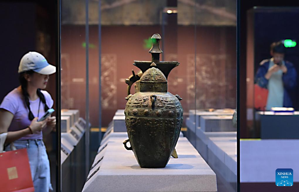 A visitor looks at an exhibit at the Chinese Archaeological Museum in Beijing, capital of China, Sept. 15, 2023. The Chinese Archaeological Museum was opened to the public on Friday. (Xinhua/Li He)