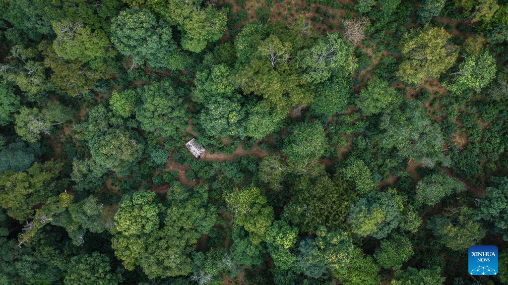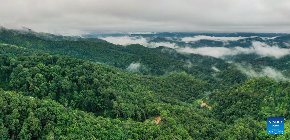 This aerial photo taken on Aug. 30, 2023 shows the old tea forests of Jingmai Mountain in Pu'er, southwest China's Yunnan Province. (Xinhua/Li He)