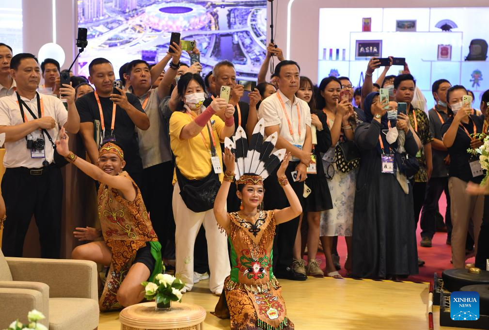 Indonesian actors perform during the 20th China-ASEAN Expo at Nanning International Convention and Exhibition Center in Nanning, capital of south China's Guangxi Zhuang Autonomous Region, Sept. 17, 2023. The opening ceremony of the 20th China-ASEAN Expo and China-ASEAN Business and Investment Summit was held on Sunday in Nanning. (Xinhua/Zhou Hua)