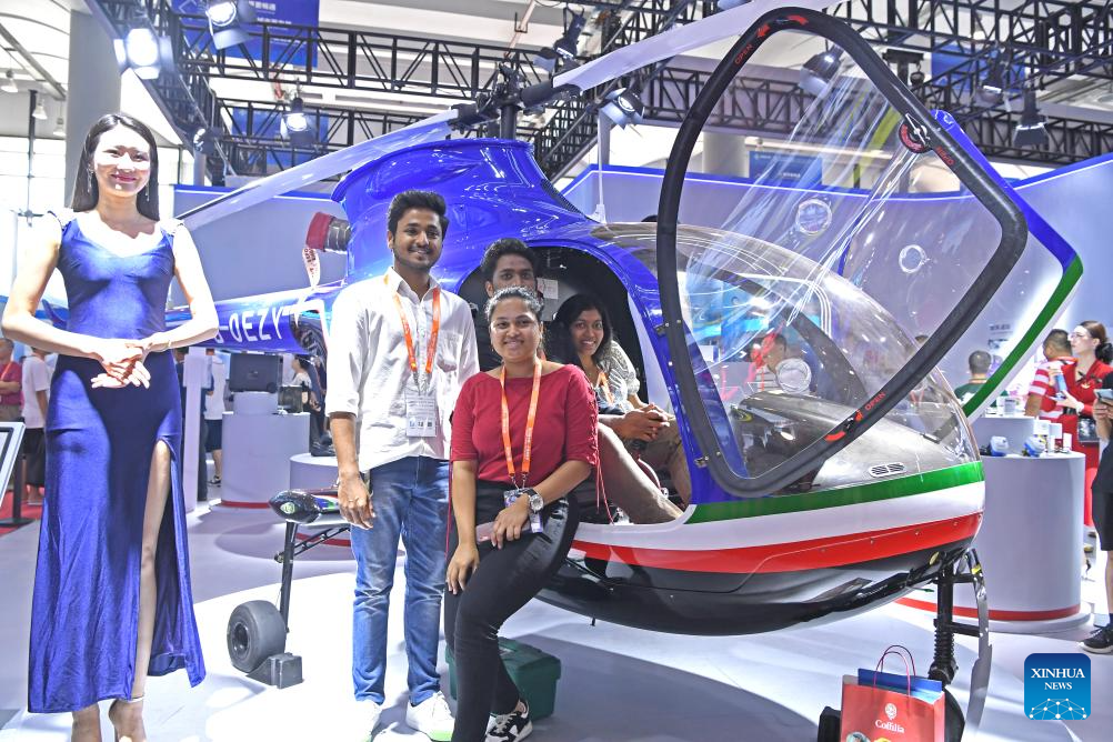 A helicopter is displayed during the 20th China-ASEAN Expo at Nanning International Convention and Exhibition Center in Nanning, capital of south China's Guangxi Zhuang Autonomous Region, Sept. 17, 2023. The opening ceremony of the 20th China-ASEAN Expo and China-ASEAN Business and Investment Summit was held on Sunday in Nanning. (Xinhua/Zhou Hua)