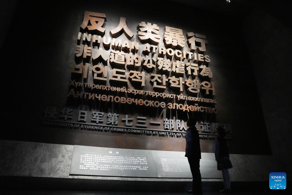 People visit the Exhibition Hall of Evidence of Crime Committed by Unit 731 of the Japanese Imperial Army in Harbin, northeast China's Heilongjiang Province, Sept. 18, 2023.