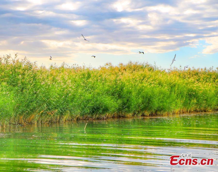 Flowering reed swings in the wind on Bosten Lake, China's largest inland freshwater lake in northwest China's Xinjiang Uygur Autonomous Region, Sept. 16, 2023. (Photo: China News Service/Wang Lubin)