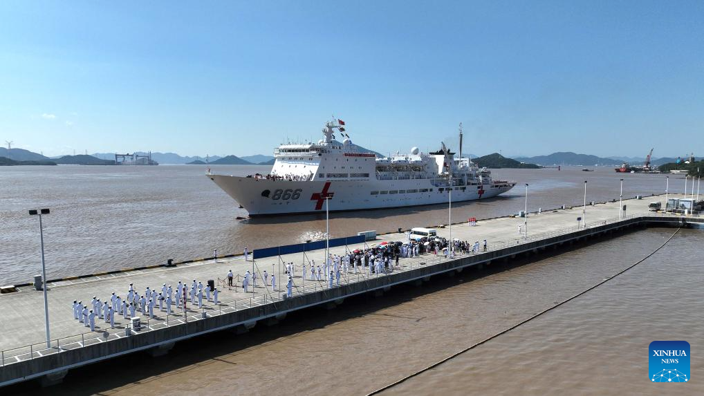 HANGZHOU, Sept. 19 (Xinhua) -- The Chinese naval hospital ship "Peace Ark" arrived at a port in Zhoushan, east China's Zhejiang Province, on Tuesday morning after completing friendly visits and humanitarian medical services to Kiribati, Tonga, Vanuatu, the Solomon Islands, and East Timor.