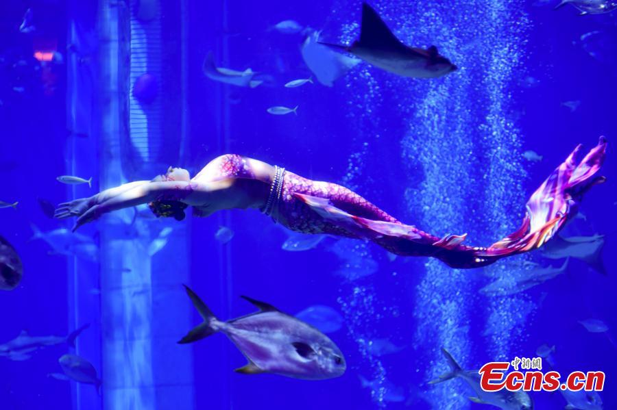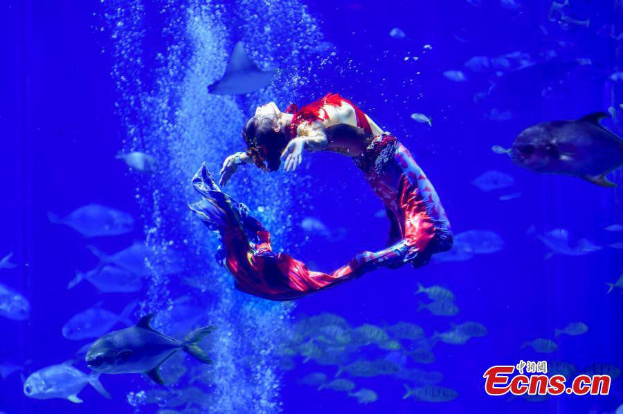 More than 60 professional mermaid divers took part in the 2023 China Mermaid Open Championship Atlantis Station and International Mermaid Contest.