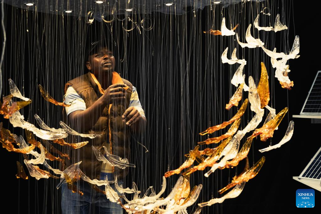 A staff member works during the 7th China (South Africa) Trade Fair in Johannesburg, South Africa, Sept. 20, 2023. The 7th China (South Africa) Trade Fair is held here from Sept. 20 to 22. (Xinhua/Zhang Yudong)