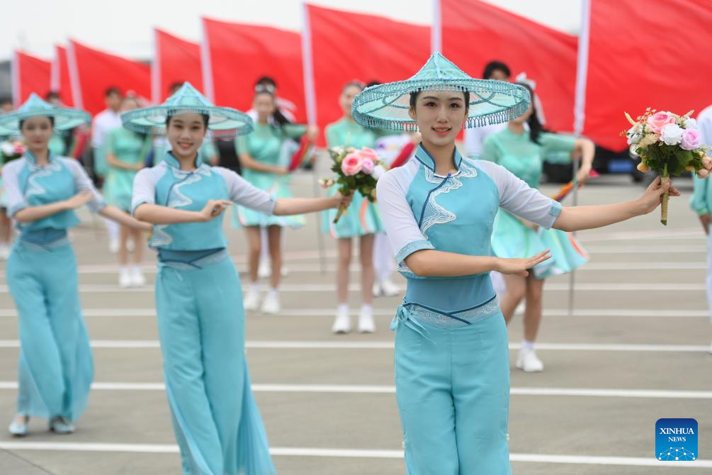 A welcoming ceremony is held upon the arrival of Crown Prince of Kuwait Sheikh Mishal Al-Ahmad Al-Jaber Al-Sabah in Hangzhou, capital city of east China's Zhejiang Province, Sept. 21, 2023. Kuwaiti crown prince on Thursday arrived here to attend the opening ceremony of the 19th Asian Games. (Xinhua/Xu Yu)