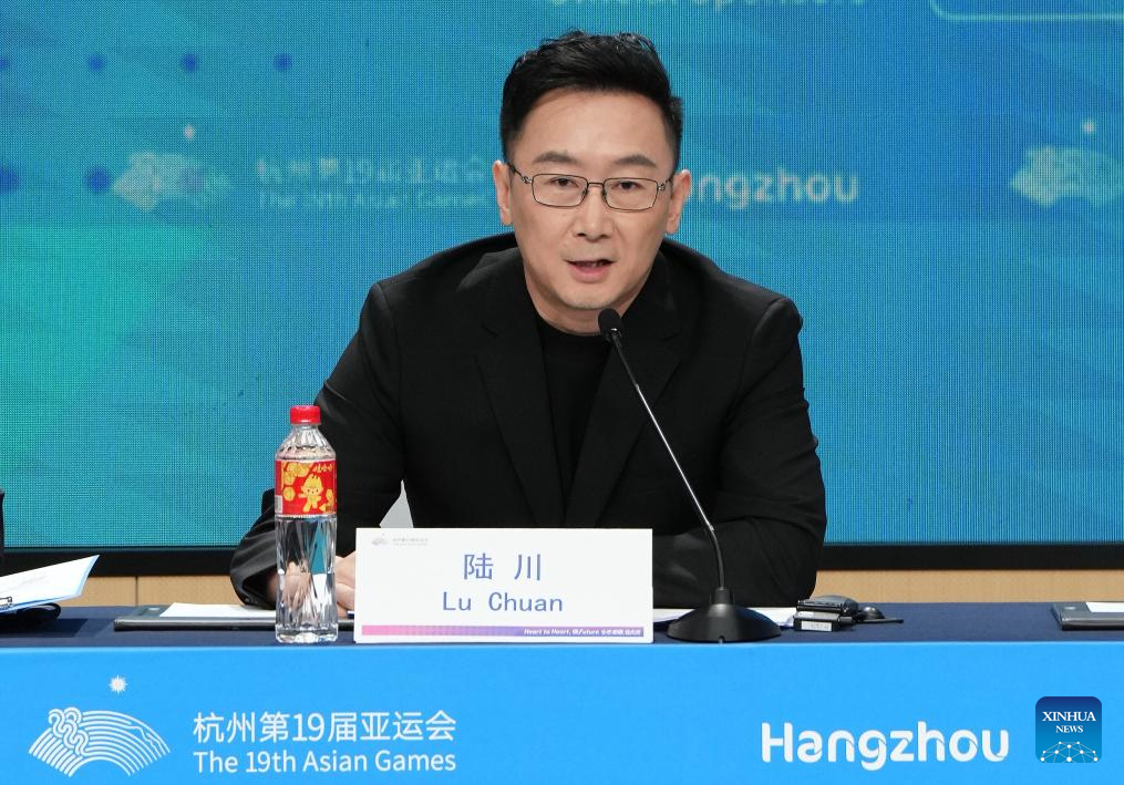 Lu Chuan, Chief Director for the Hangzhou Asian Games Opening Ceremony, speaks at a press conference on preparations for the opening ceremony in Hangzhou, east China's Zhejiang Province, Sept. 21, 2023. (Xinhua/Li Yibo)