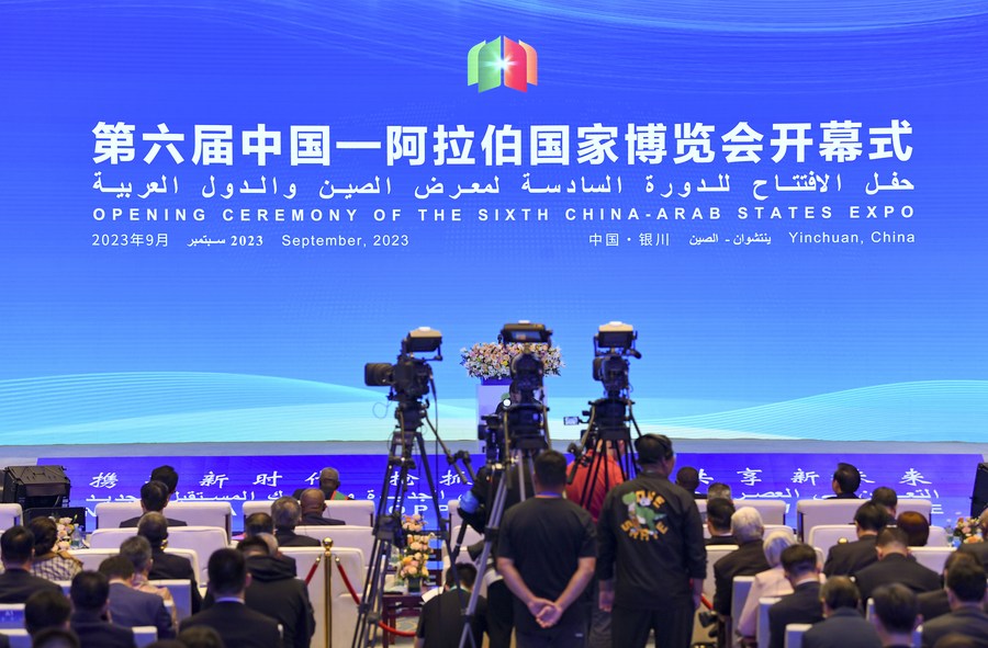 The opening ceremony of the sixth China-Arab States Expo is held in Yinchuan, northwest China's Ningxia Hui Autonomous Region, Sept. 21, 2023. (Xinhua/Feng Kaihua)