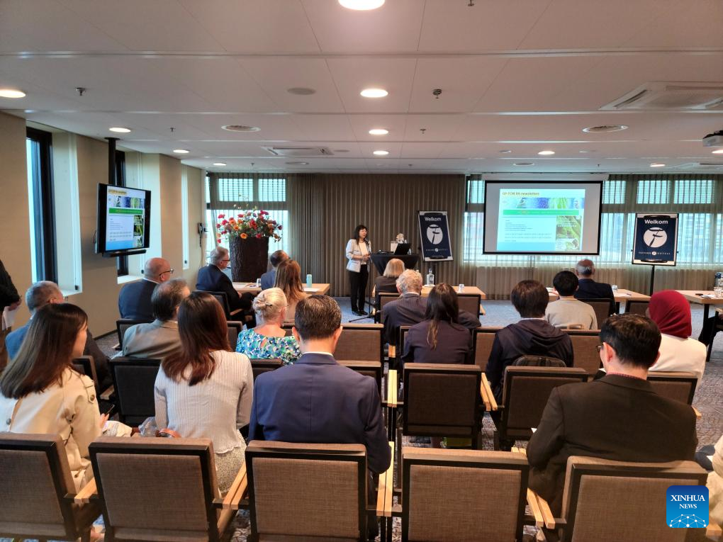 This photo taken on Sept. 18, 2023 shows the 2023 annual meeting of the Good Practice Traditional Chinese Medicine Research Association (GP-TCM RA) in Leiden, the Netherlands. European and Chinese scholars were building a collaborative bridge in the field of traditional Chinese medicine (TCM) as they held their annual academic meeting here, a tradition that has spanned the past decade. (Xinhua/Wang Xiangjiang)