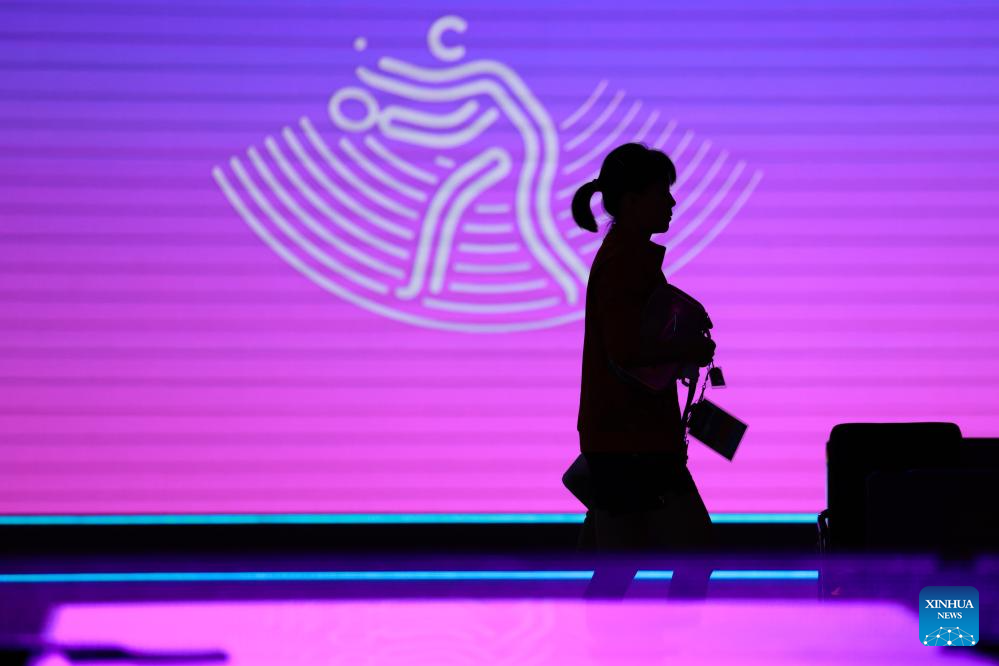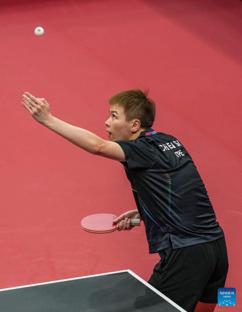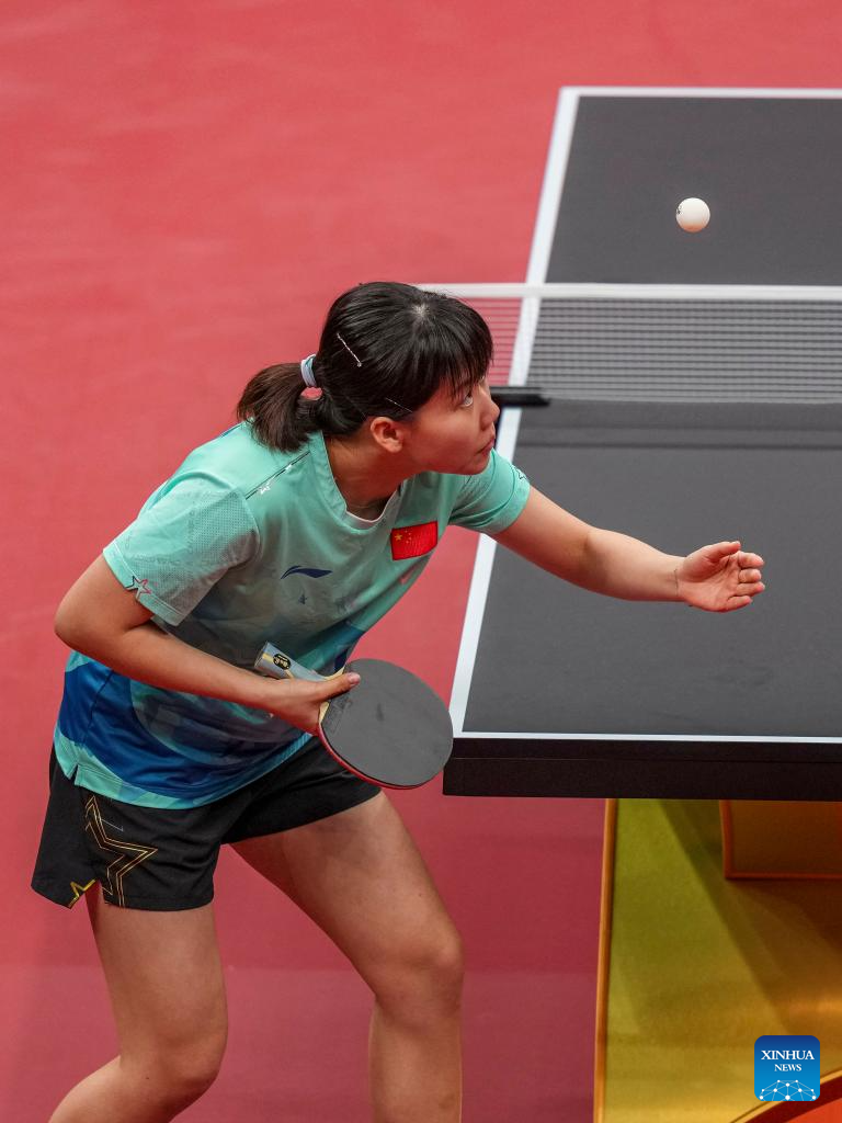 Chen Xingtong of China is seen before the women's team preliminary group A match between China and China's Macao at the 19th Asian Games in Hangzhou, east China's Zhejiang Province, Sept. 22, 2023. (Xinhua/Liu Xu)