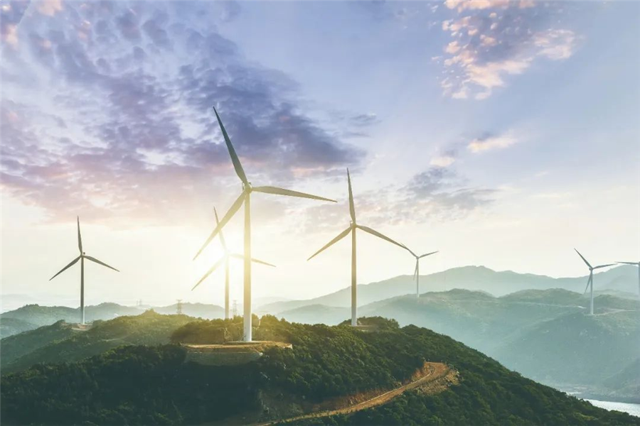 Photo shows wind turbines in northwest China. (Photo courtesy of the Organizing Committee of the Hangzhou Asian Games)