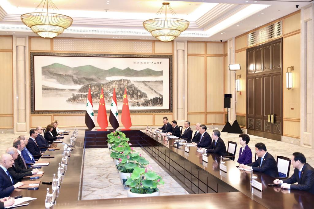 China is willing to strengthen Belt and Road cooperation with Syria, increase the import of high-quality agricultural products from Syria, and jointly implement the Global Development Initiative, the Global Security Initiative and the Global Civilization Initiative to make active contributions to regional and global peace and development.