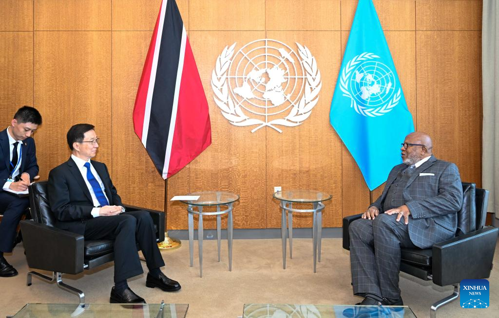 Han made the remarks when meeting with Dennis Francis, president of the 78th session of the UN General Assembly at the UN headquarters in New York.
