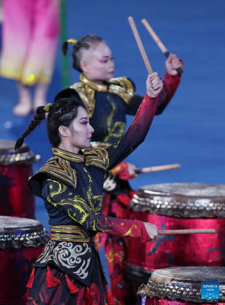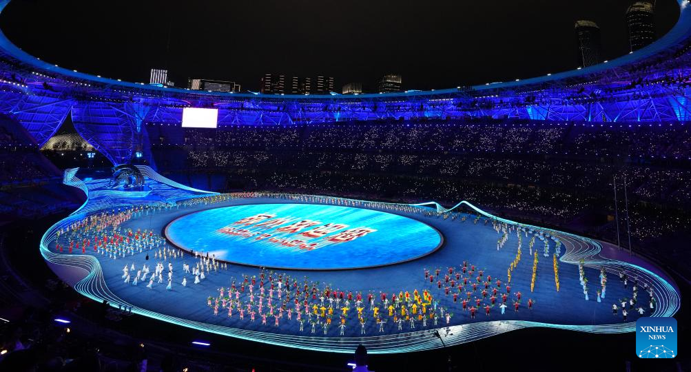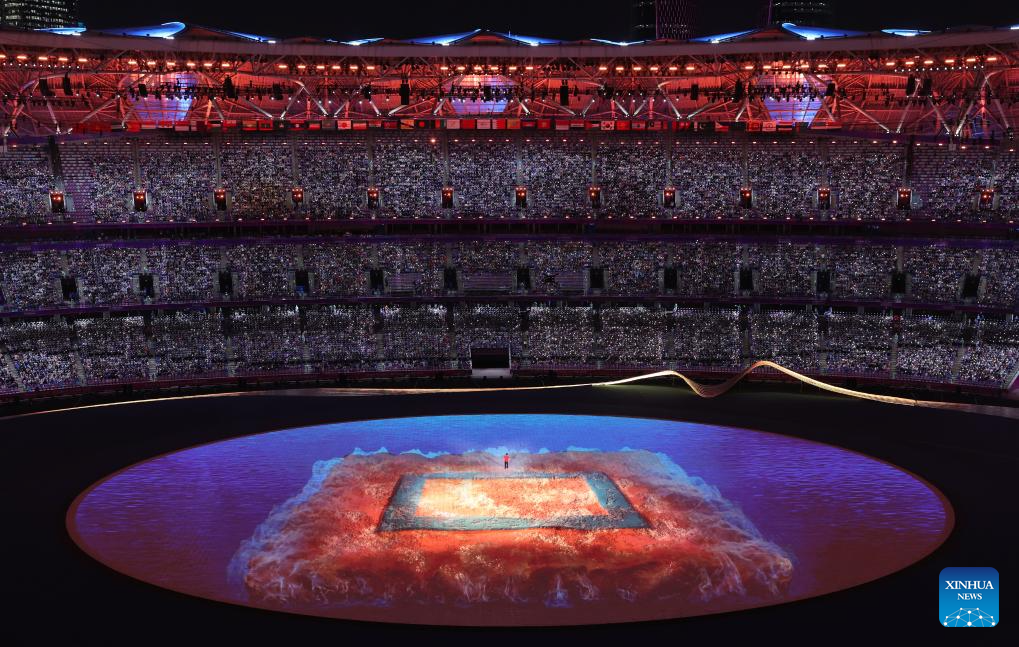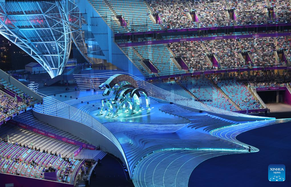 Artists perform before the opening ceremony of the 19th Asian Games at the Hangzhou Olympic Sports Center Stadium in Hangzhou, east China's Zhejiang Province, Sept. 23, 2023. (Xinhua/Meng Yongmin)
