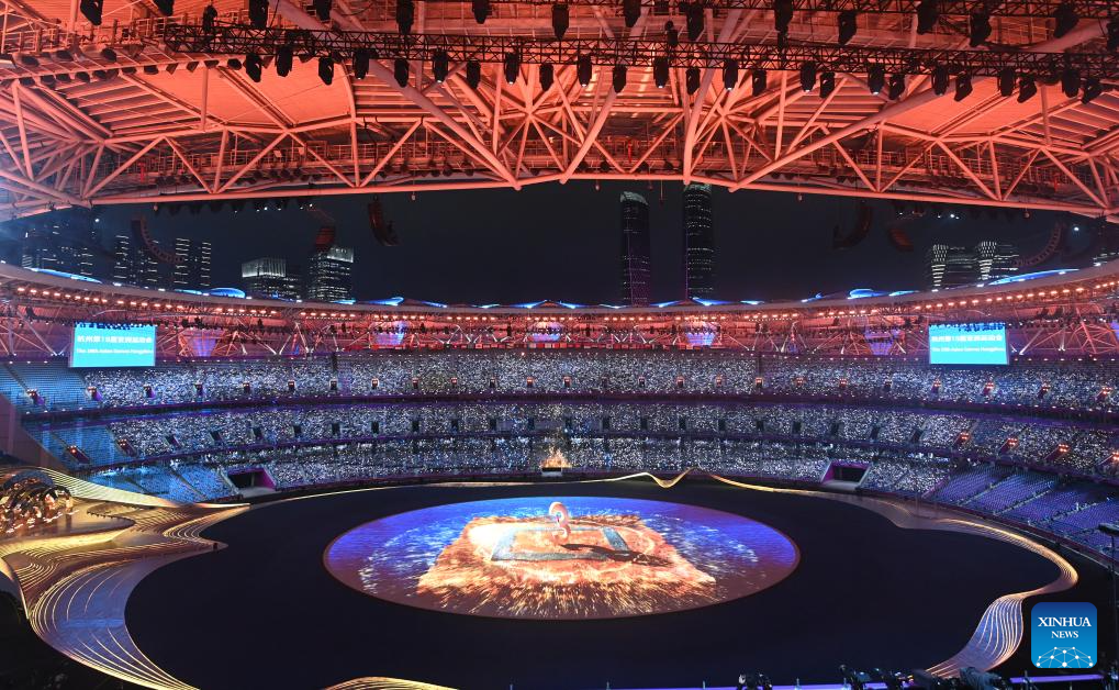 Artists perform before the opening ceremony of the 19th Asian Games at the Hangzhou Olympic Sports Center Stadium in Hangzhou, east China's Zhejiang Province, Sept. 23, 2023. (Xinhua/Du yu)