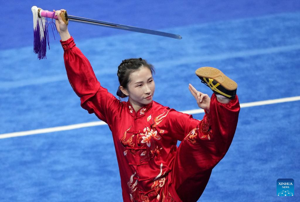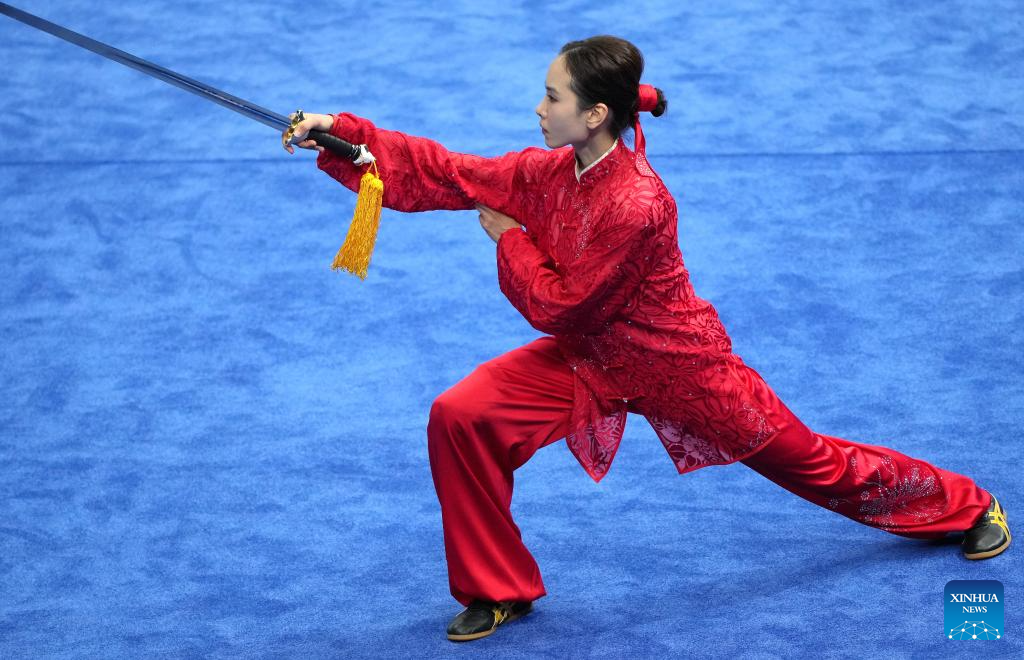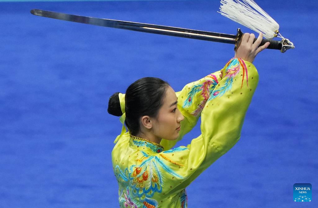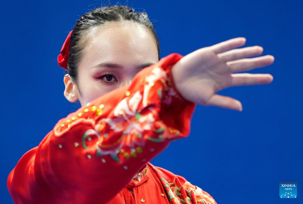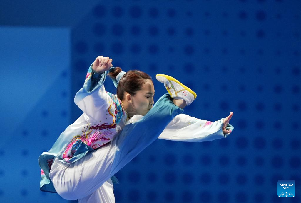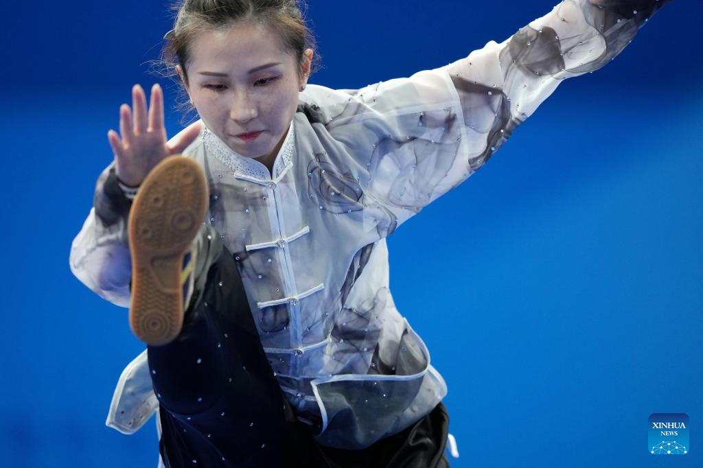 Sydney Chin Sy Xuan of Malaysia competes during Women's Taijiquan Final of Wushu at the 19th Asian Games in Hangzhou, east China's Zhejiang Province, Sept. 24, 2023. Women's Taijiquan & Taijijian All-round of Wushu took place here Sunday. (Xinhua/Li Yibo)
