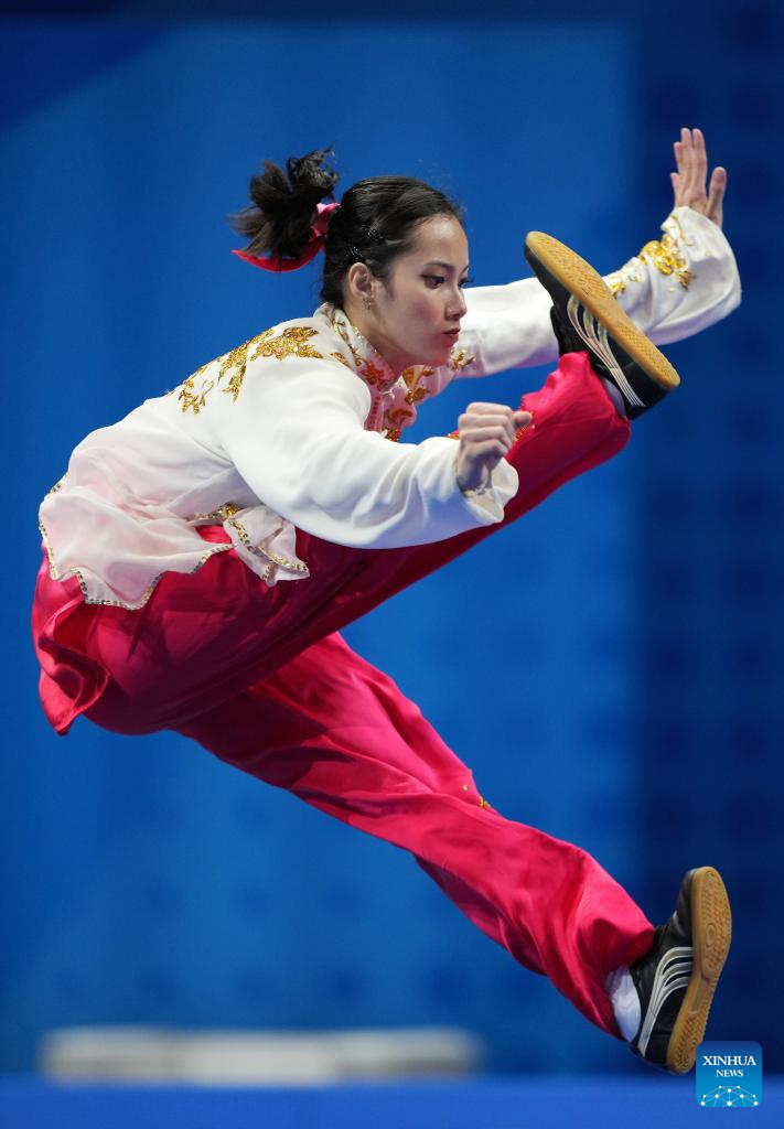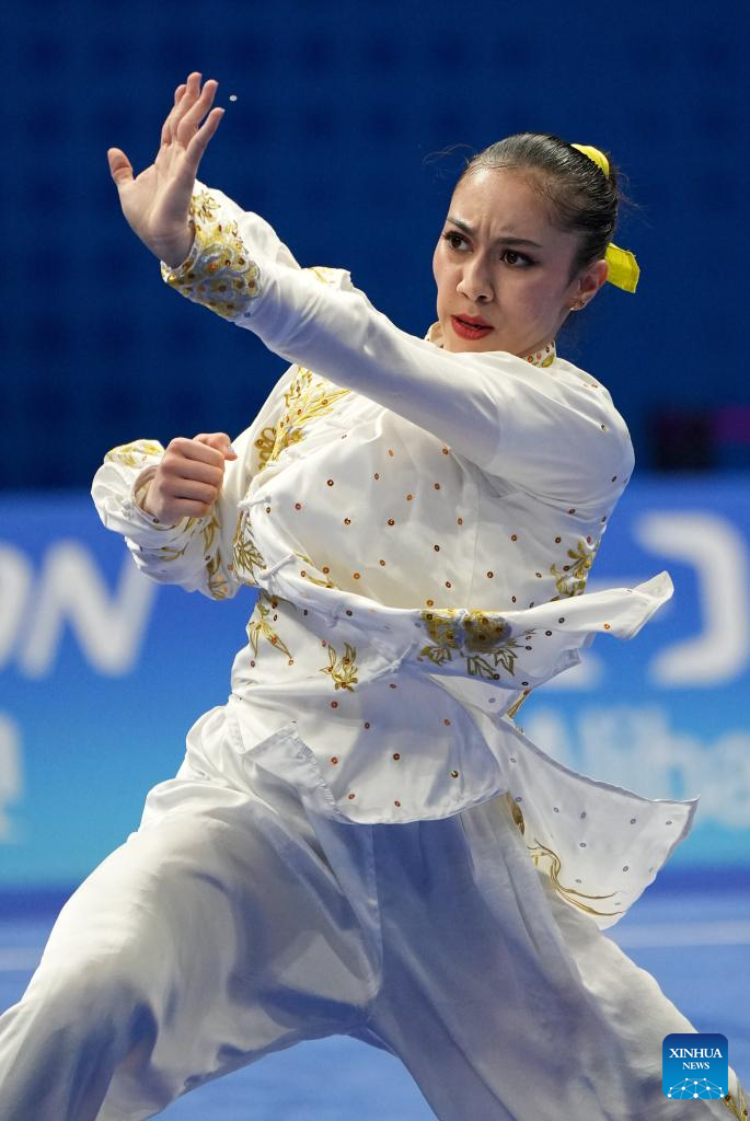 Agatha Chrystenzen Wong of the Philippines competes during Women's Taijiquan Final of Wushu at the 19th Asian Games in Hangzhou, east China's Zhejiang Province, Sept. 24, 2023. Women's Taijiquan & Taijijian All-round of Wushu took place here Sunday. (Xinhua/Li Yibo)