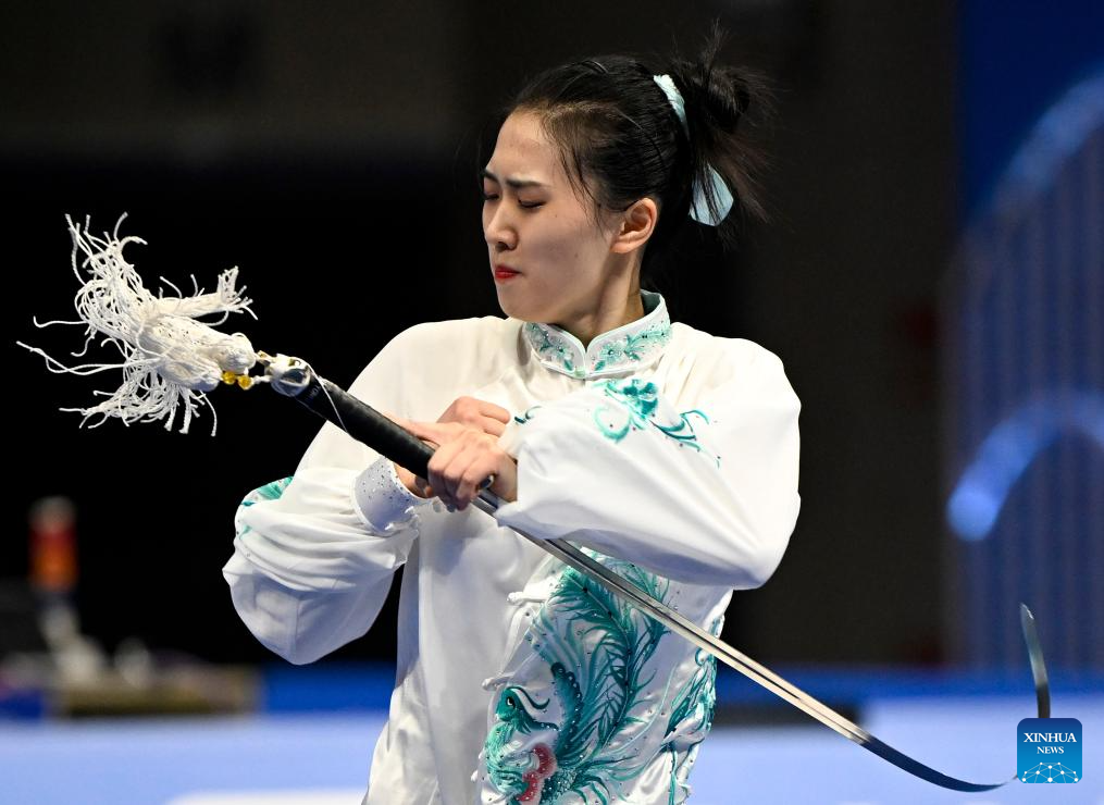 Mok Uen Ying Juanita of China's Hong Kong competes during Women's Taijiquan Final of Wushu at the 19th Asian Games in Hangzhou, east China's Zhejiang Province, Sept. 24, 2023. Women's Taijiquan & Taijijian All-round of Wushu took place here Sunday. (Xinhua/Li Yibo)
