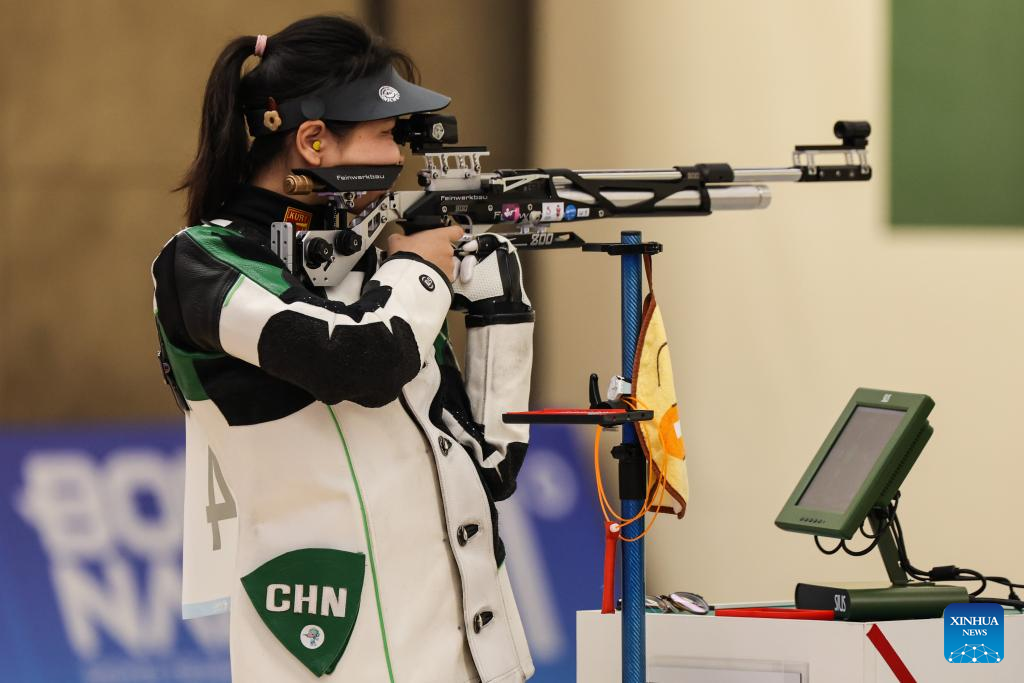 HANGZHOU, Sept. 24 (Xinhua) -- On Sunday, the first competition day of the 19th Asian Games following the opening ceremony, Chinese shooters clinched two gold medals and one silver. The day's remaining three medals were claimed by India and Mongolia.