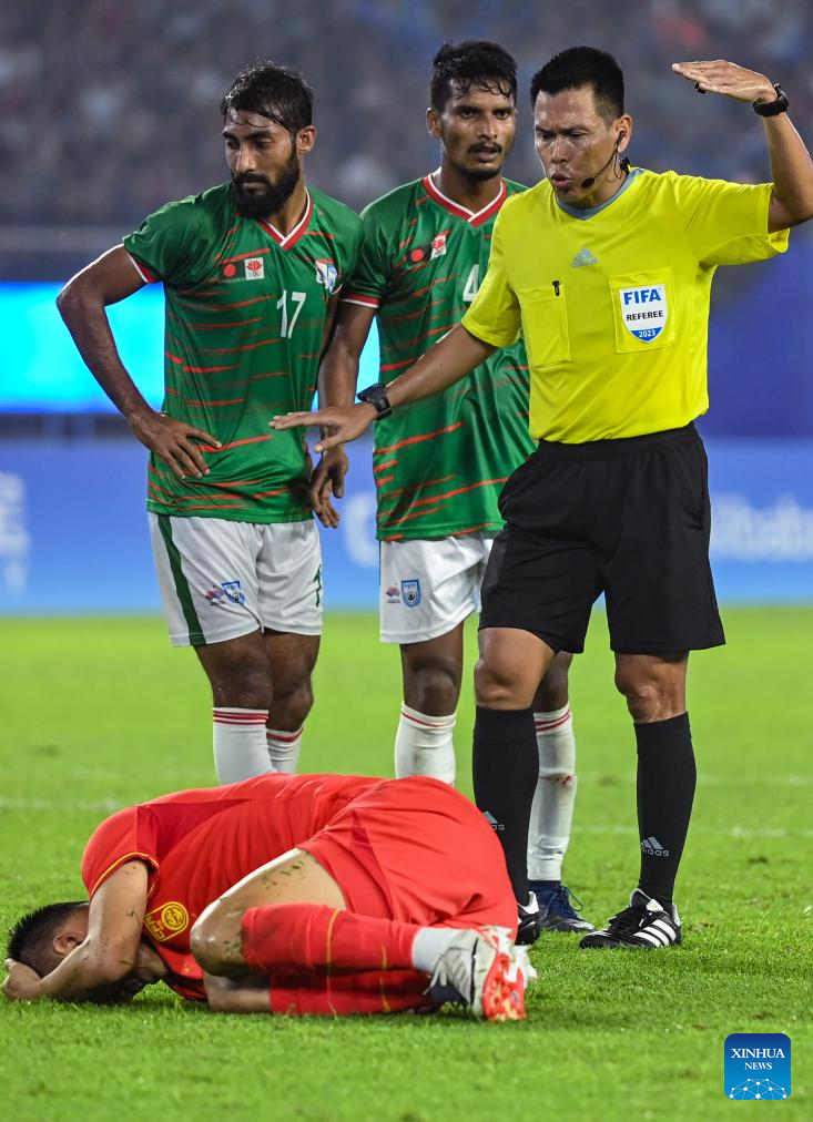 HANGZHOU, Sept. 24 (Xinhua) -- China secured the top spot in their group following a 0-0 draw with Bangladesh in Group A of the Hangzhou Asian Games men's football competition on Sunday.