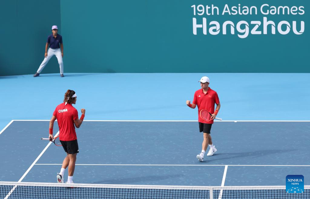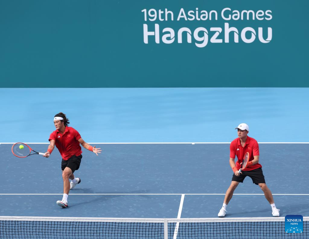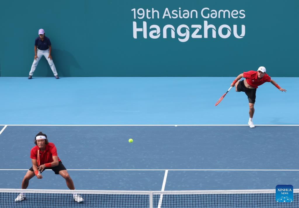 HANGZHOU, Sept. 24 (Xinhua) -- Chinese tennis players Wu Yibing and Zhang Zhizhen secured a 6-3, 6-0 win over a duo from Chinese Taipei in the first round of the men's doubles at the Hangzhou Asian Games on Sunday.