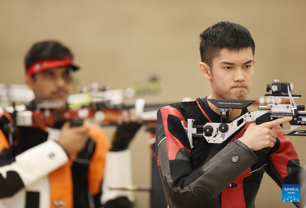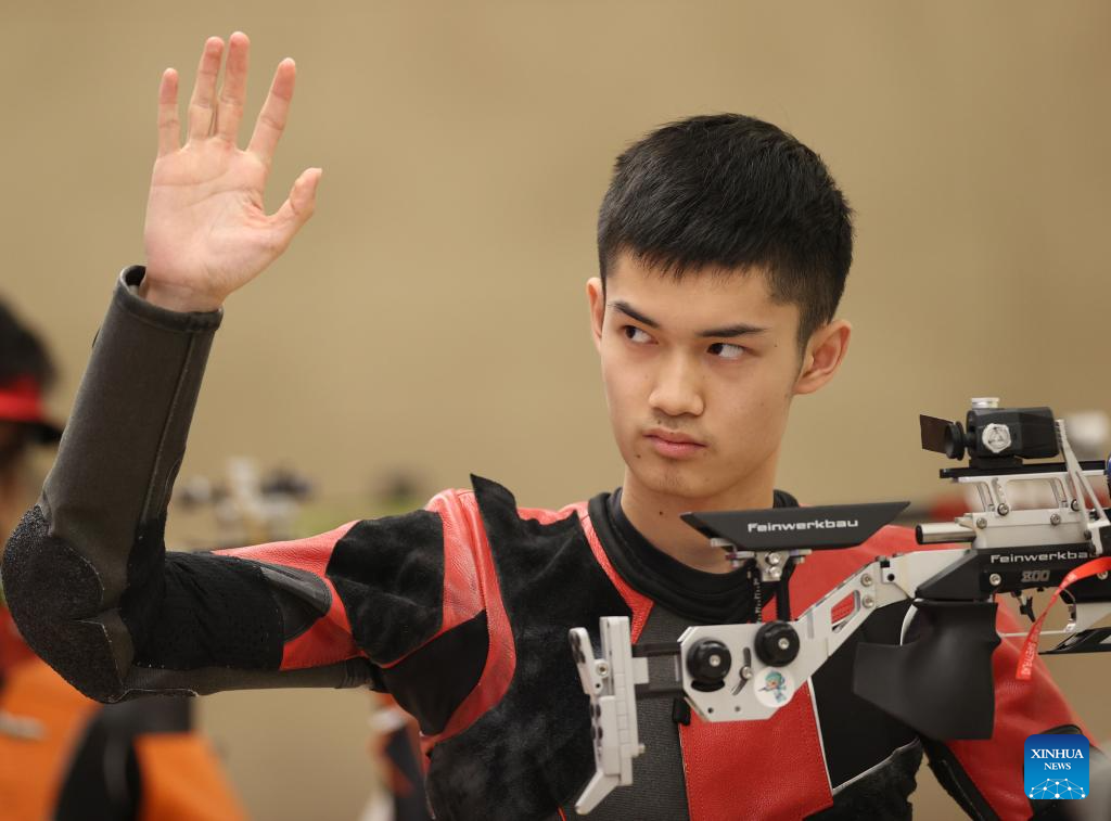 Sheng Lihao of China competes the Men's 10m Air Rifle Final of Shooting at the 19th Asian Games in Hangzhou, east China's Zhejiang Province, Sept. 25, 2023. (Xinhua/Jia Haocheng)