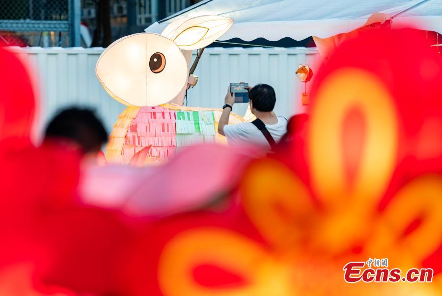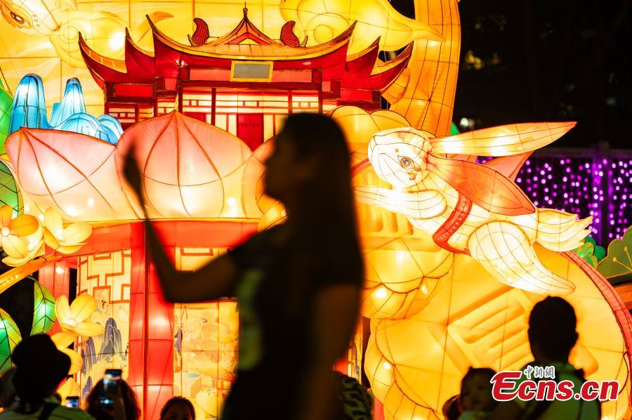 Dazzling lanterns are displayed at Victoria Park to celebrate the Mid-Autumn Festival in the Hong Kong Special Administrative Region, Sept. 24, 2023. (Photo: China News Service/Hou Yu)