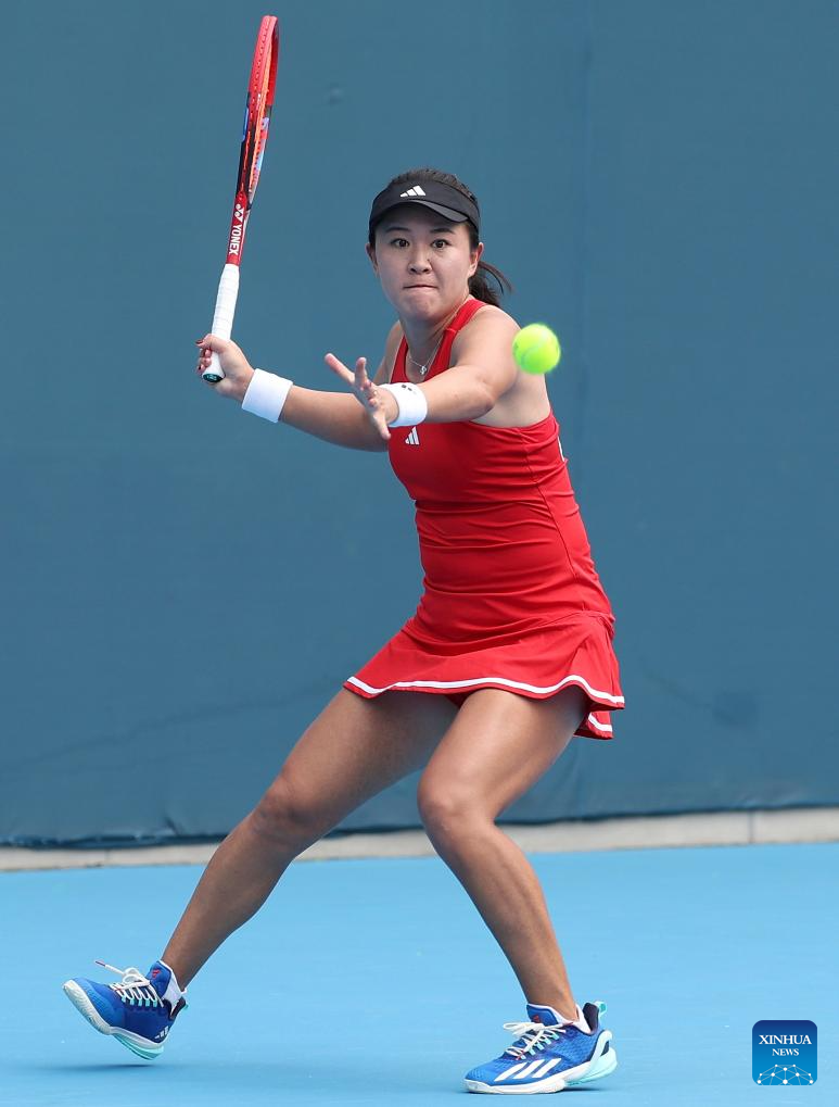 Zhu Lin of China competes during the Women's Singles of Tennis between Zhu Lin of China and Ushna Suhail of Pakistan at the 19th Asian Games in Hangzhou, east China's Zhejiang Province, Sept. 25, 2023. (Xinhua/Meng Chenguang)