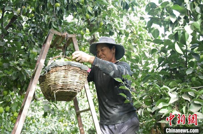 Liu Desheng, owner of the orchard, together with many workers, is busy with the harvesting, sorting and packaging of pears. Thanks to guidance from the local agricultural science research institute, Liu better managed water and fertilizer, and carried out pest control in a more timely manner this year. "The yield per mu this year is approximately 1 tonne. I'll intensify efforts on management next year and hopefully this will increase income," Liu said.