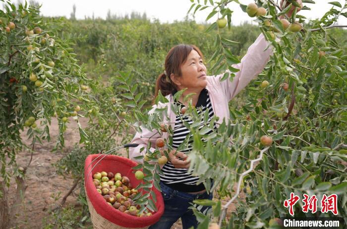 Many local residents come to a jujube orchard to pick panzao jujubes, a crispy, juicy and sweet jujube variety.