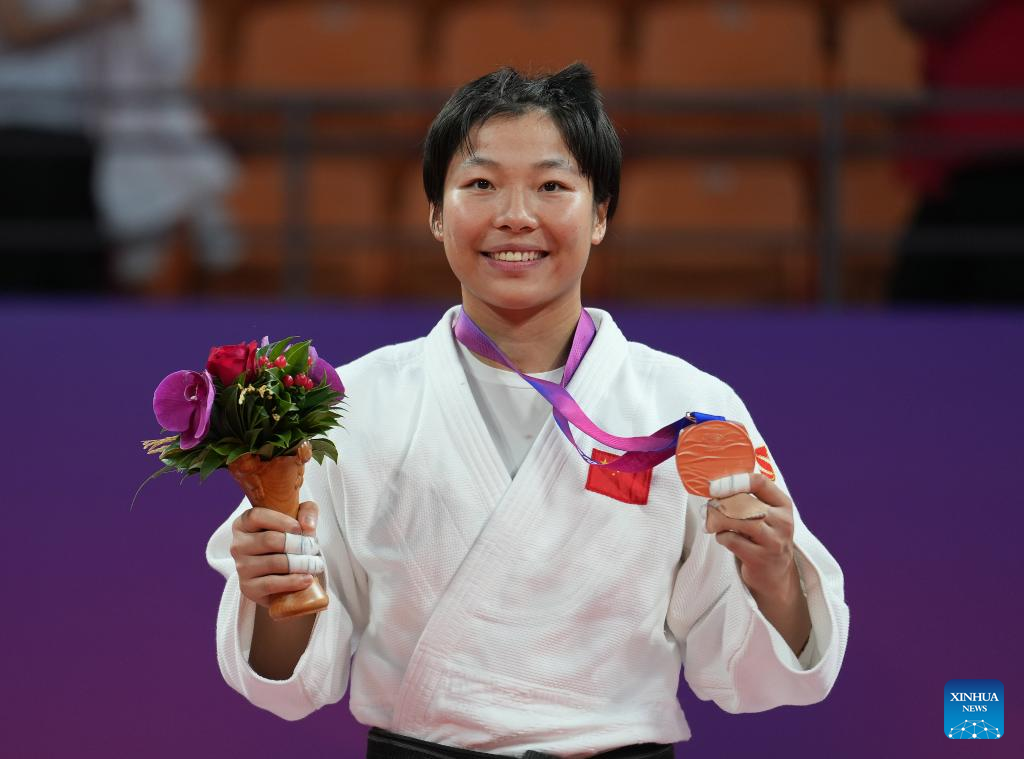 Bronze medalist Feng Yingying of China attends the awarding ceremony for Judo Women's 70kg at the 19th Asian Games in Hangzhou, east China's Zhejiang Province, Sept. 25, 2023. (Xinhua/Wan Xiang)