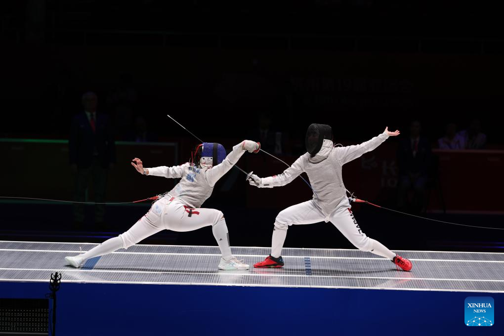 HANGZHOU, Sept. 25 (Xinhua) -- China's Huang Qianqian secured a surprising gold in the women's foil individual event at the Hangzhou Asian Games on Monday, while Gu Bon-gil of South Korea fell short in his quest for a fourth consecutive men's sabre gold.