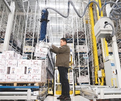 A worker operates equipment in an intelligent storage workshop of a company in Yongnian district, Handan city, north China's Hebei Province. (Xinhua/Zhao Hongyu)