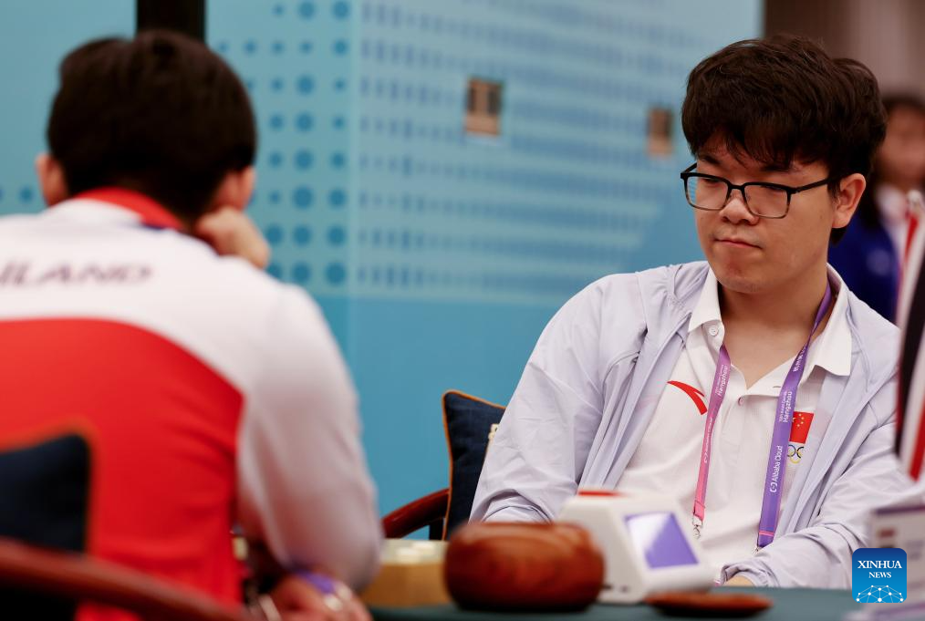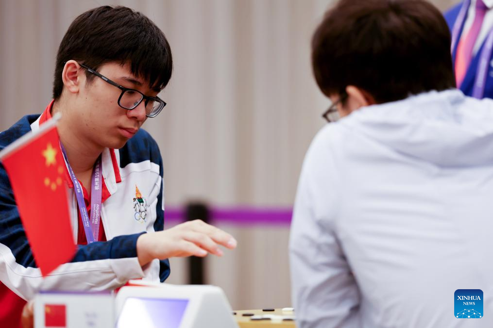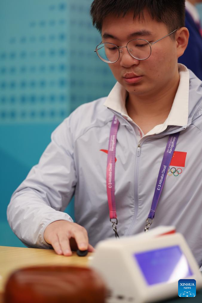 Yang Dingxin of China competes during the Men's Individual Preliminary Round of Go Chess at the 19th Asian Games in Hangzhou, east China's Zhejiang Province, Sept. 26, 2023. (Xinhua/Gong Bing)