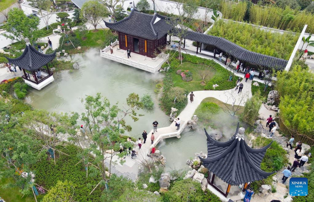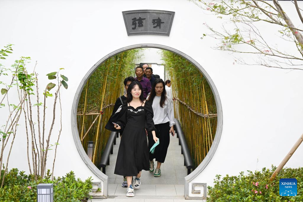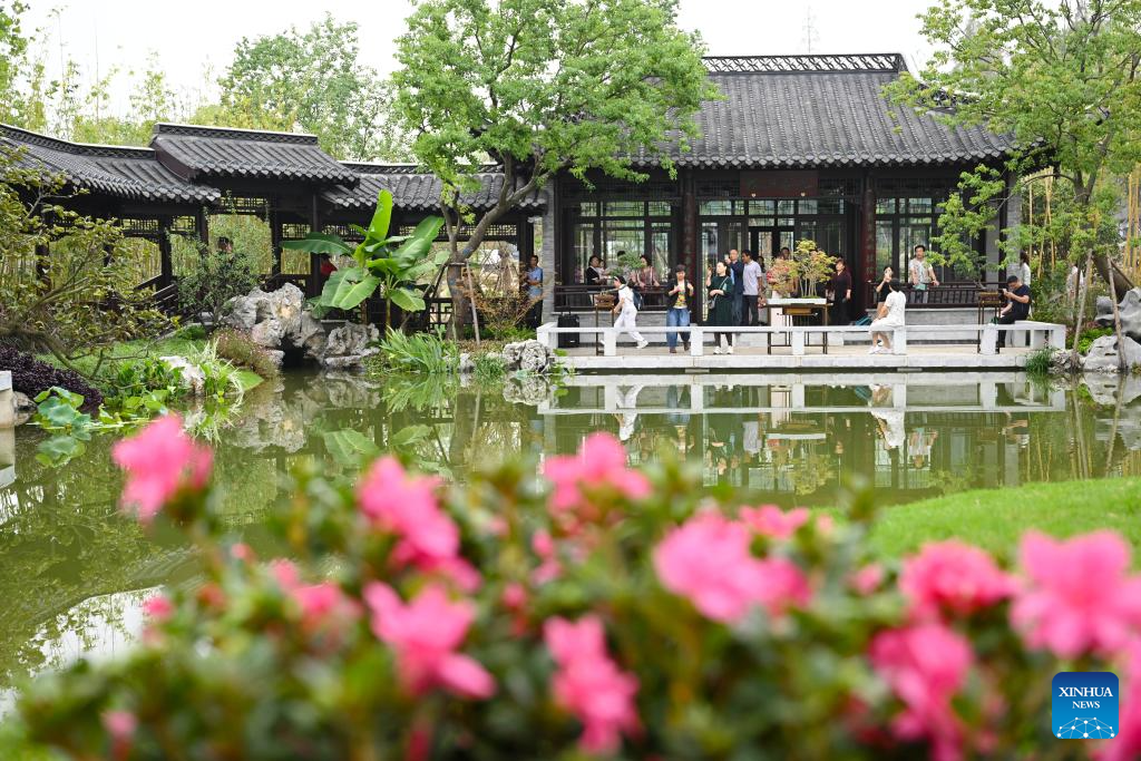 People visit the Suzhou garden at the 14th China (Hefei) International Garden Expo in Hefei, east China's Anhui Province, Sept. 26, 2023. The expo opened in Hefei on Tuesday, attracting 38 cities to showcase the characteristics of their gardens. (Xinhua/Zhou Mu)