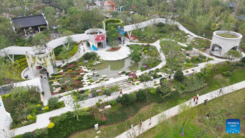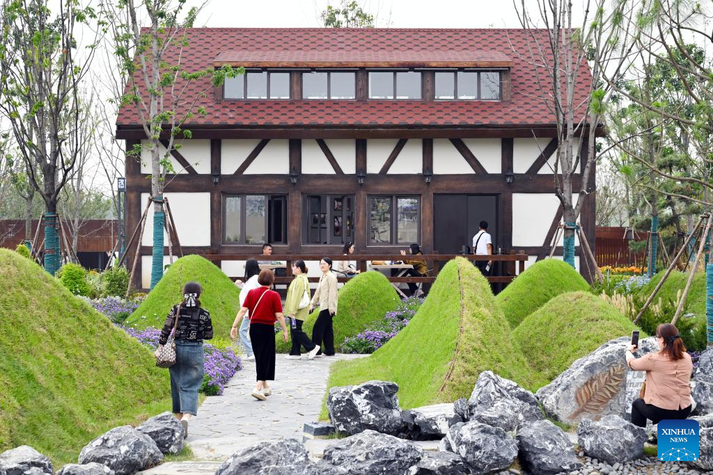 People visit the Osnabruck garden of Germany at the 14th China (Hefei) International Garden Expo in Hefei, east China's Anhui Province, Sept. 26, 2023. The expo opened in Hefei on Tuesday, attracting 38 cities to showcase the characteristics of their gardens. (Xinhua/Zhou Mu)