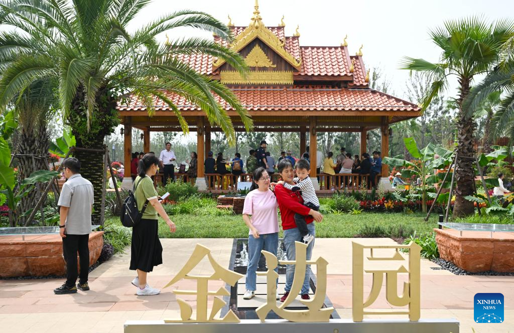 People visit the Phnom Penh garden of Cambodia at the 14th China (Hefei) International Garden Expo in Hefei, east China's Anhui Province, Sept. 26, 2023. The expo opened in Hefei on Tuesday, attracting 38 cities to showcase the characteristics of their gardens. (Xinhua/Zhou Mu)