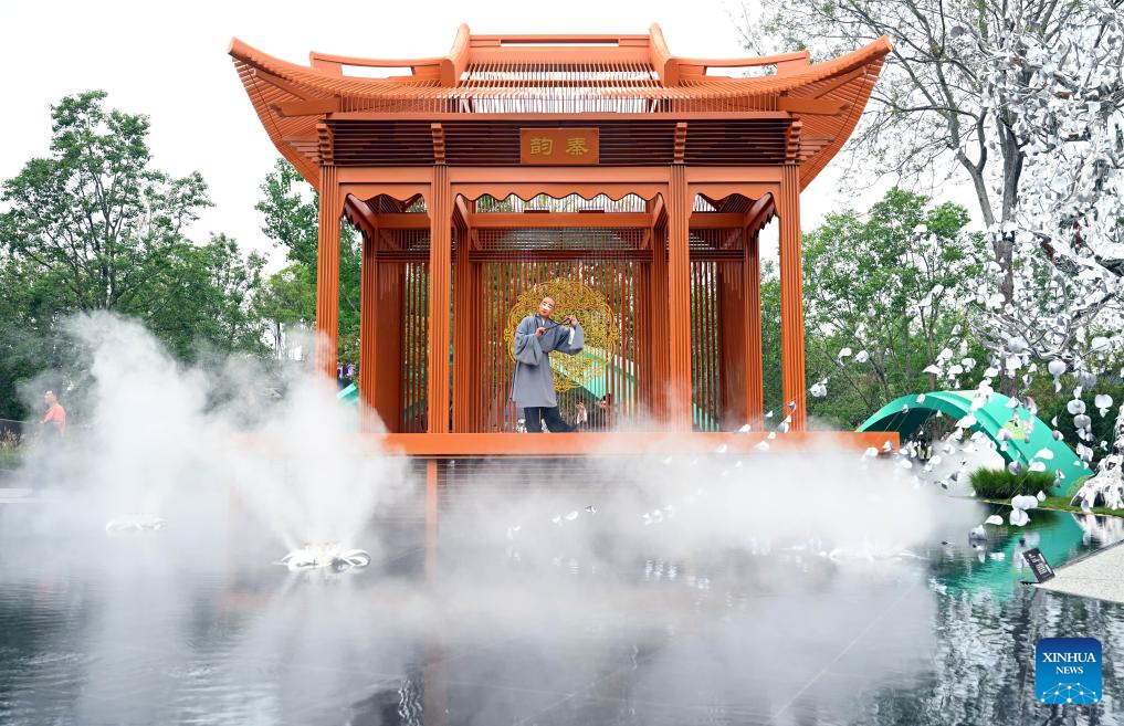 A performance is staged at the Xi'an garden at the 14th China (Hefei) International Garden Expo in Hefei, east China's Anhui Province, Sept. 26, 2023. The expo opened in Hefei on Tuesday, attracting 38 cities to showcase the characteristics of their gardens. (Xinhua/Zhou Mu)