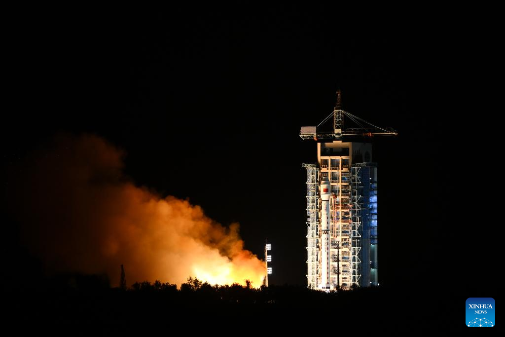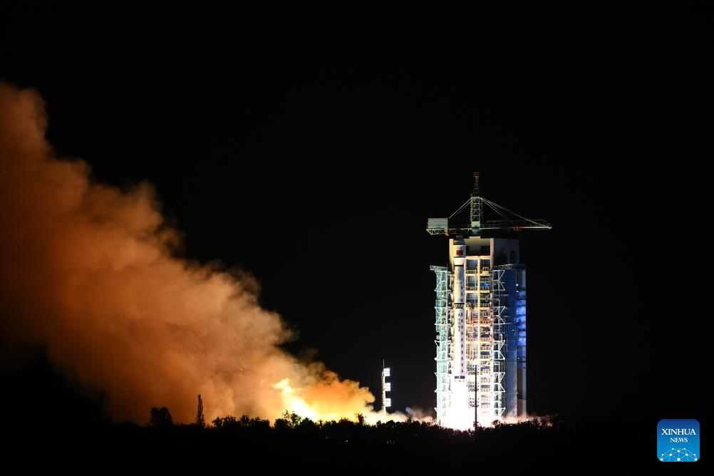 A Long March-4C carrier rocket carrying the Yaogan-33 04 satellite blasts off from the Jiuquan Satellite Launch Center in northwest China on Sept. 27, 2023. The satellite has entered its planned orbit successfully. (Photo by Wang Jiangbo/Xinhua)