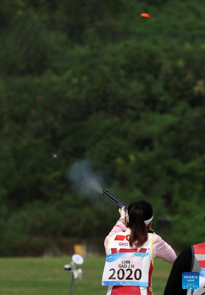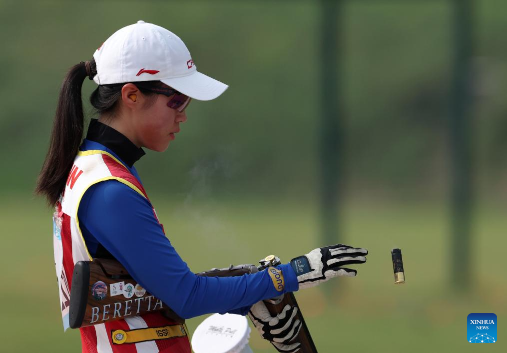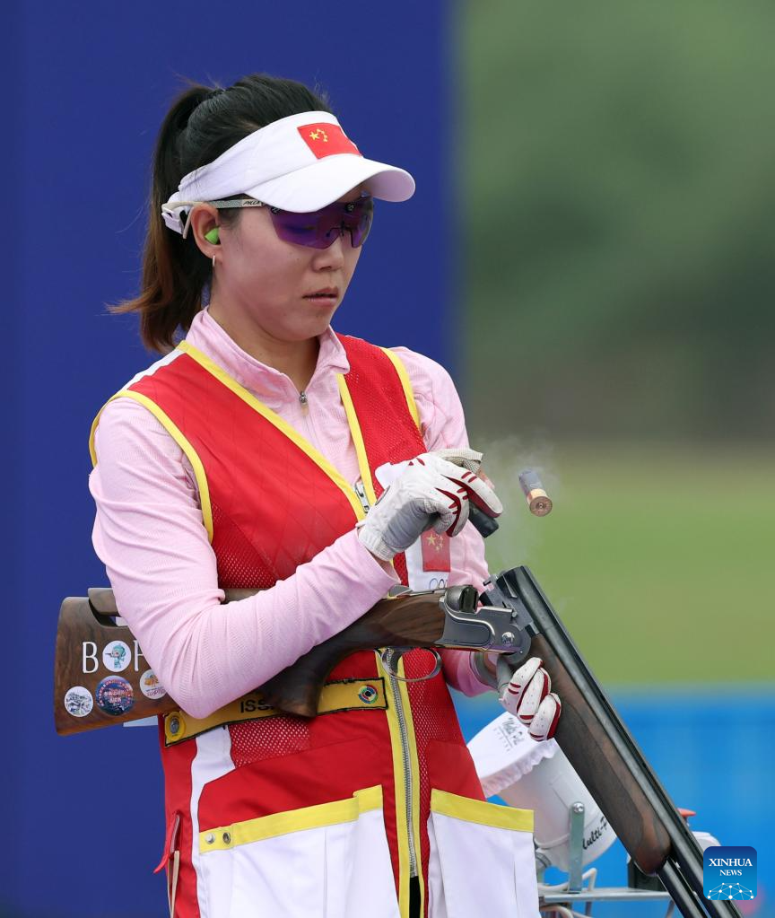 Huang Sixue of China competes during the Phase 1 of Women's Team of Skeet-75 at the 19th Asian Games in Hangzhou, east China's Zhejiang Province, Sept. 26, 2023. (Xinhua/Du Xiaoyi)
