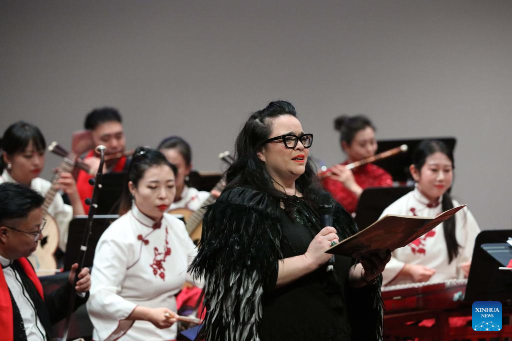 New Zealand singer Deborah Wai Kapohe (front) performs "Maori Love Song" (Pokarekare Ana) at a concert of traditional Chinese music in Christchurch, New Zealand, Sept. 26, 2023. (Photo by Meng Tao/Xinhua)