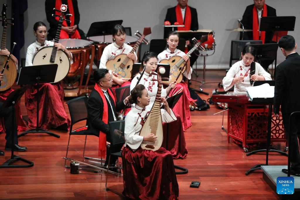 Musicians perform at a concert of traditional Chinese music in Christchurch, New Zealand, Sept. 26, 2023. (Photo by Meng Tao/Xinhua)